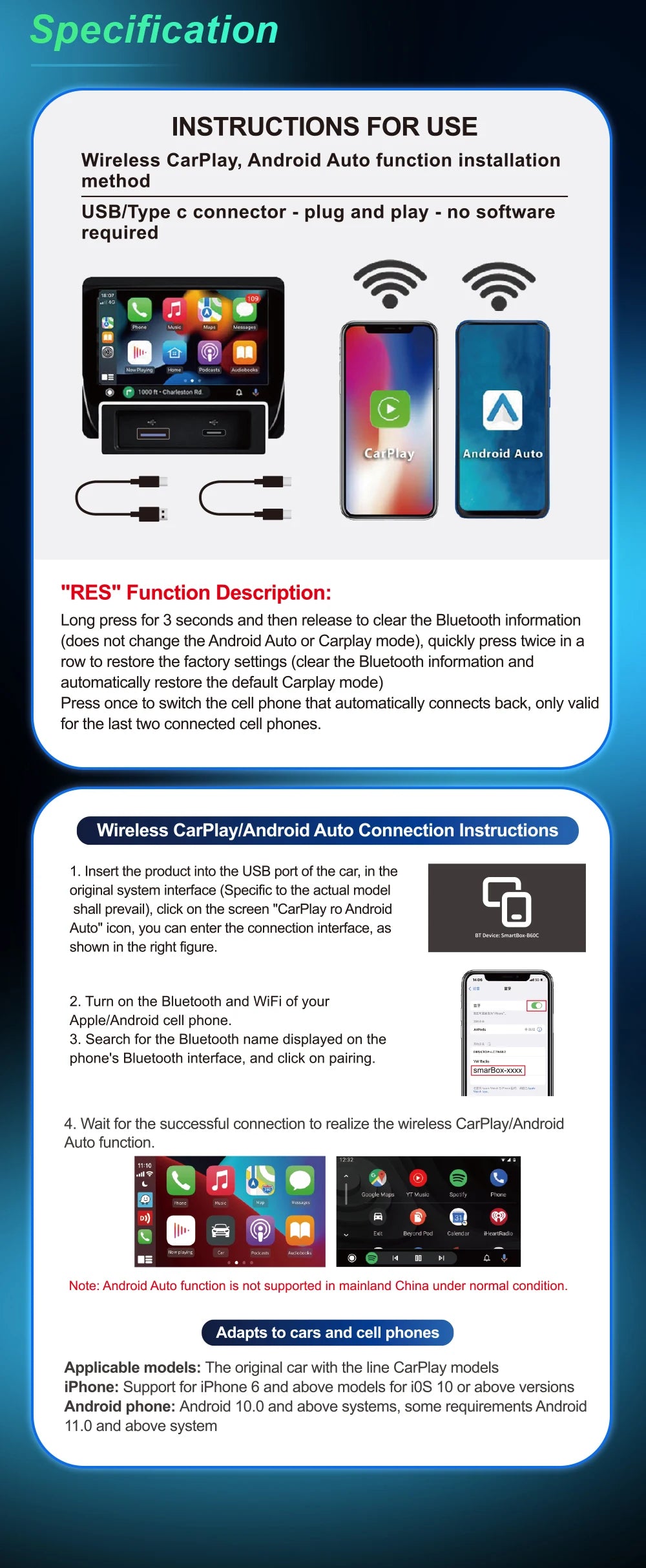 This device automatically connects to your smartphone once the car is started, eliminating the need to plug your phone in every time. It enables hands-free calls, voice navigation, music streaming, and message dictation using Siri or Google Assistant. Ideal for daily commuters, rideshare drivers, and anyone who values convenience and safety while driving.