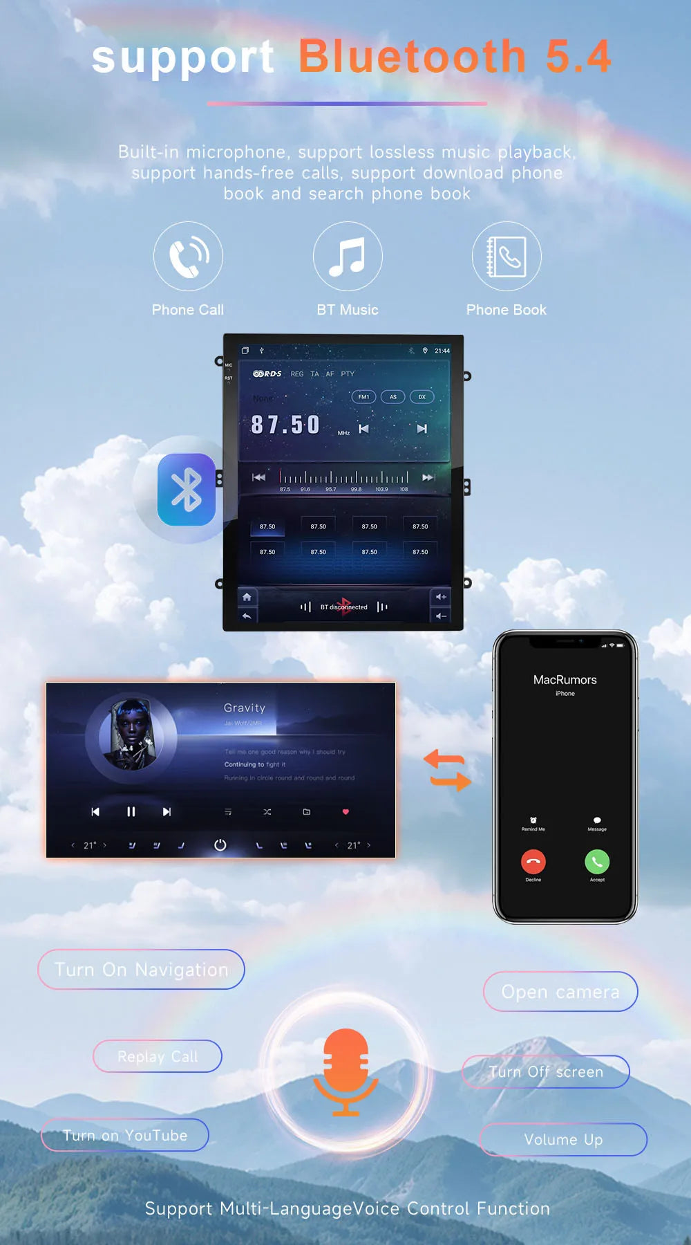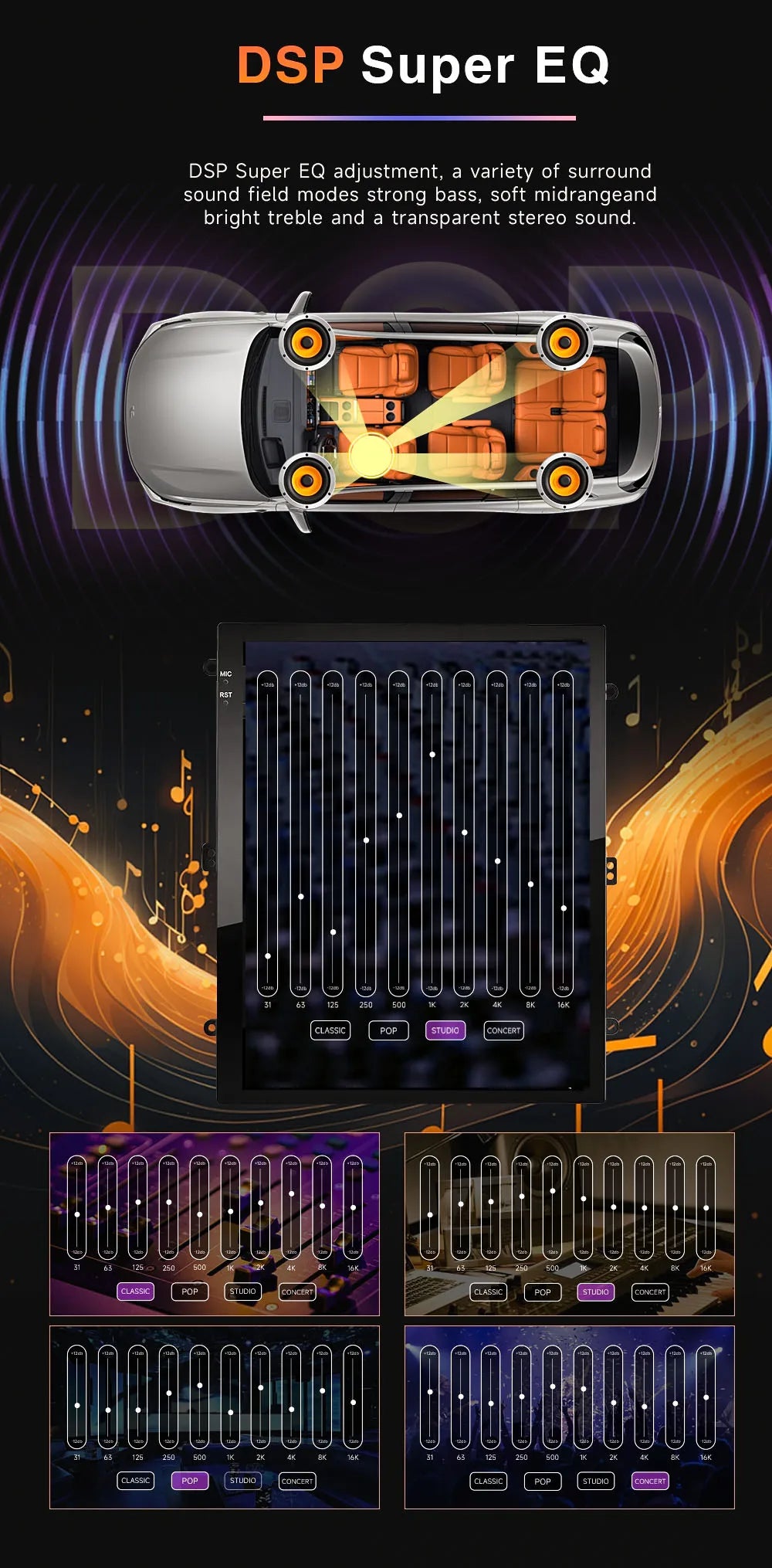 From hands-free calls and voice commands to real-time GPS navigation and streaming music, this stereo transforms your car into a smart hub. With built-in WiFi, CarPlay, Android Auto, DSP audio processing, and steering wheel control support, every drive becomes safer and more enjoyable. Split-screen functionality lets you multitask effortlessly between apps, maps, and media.