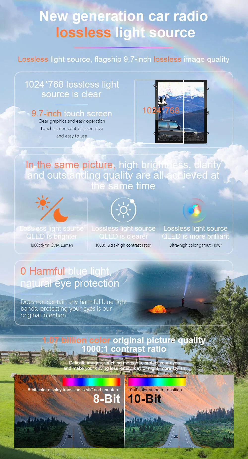 Crafted with a durable aluminum alloy frame, ABS housing, and a capacitive touch QLED screen, this stereo offers a premium look and feel. The high-resolution display (1024×768P) ensures vibrant colors and sharp clarity for all your media and navigation needs. It’s built to last and designed to complement your vehicle’s dashboard perfectly.