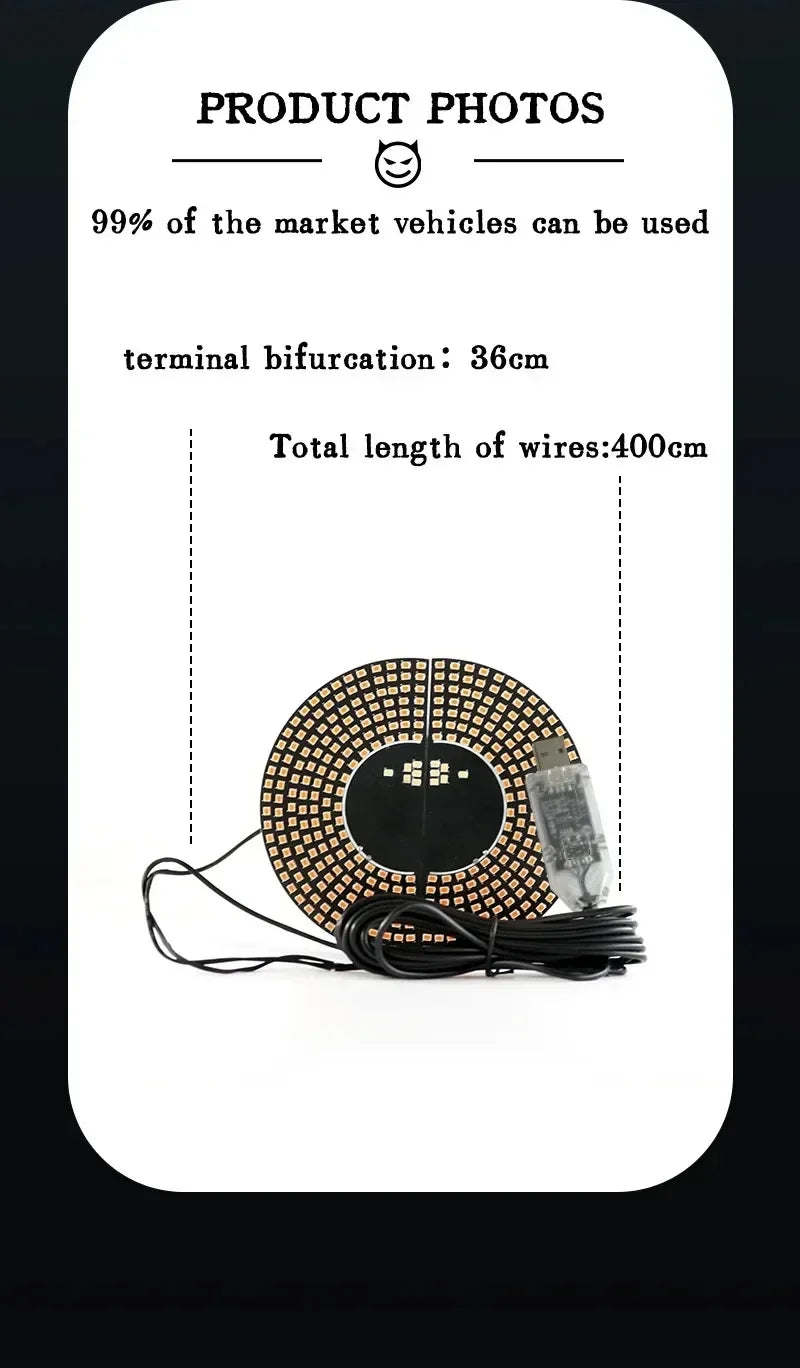 Constructed from durable ABS plastic, the Devil’s Eyes light features a sleek, futuristic design that resembles a glowing eye—sure to draw attention both day and night. The LED matrix panel is built for clarity and brightness, ensuring long-term performance with minimal heat. Strong transparent double-sided adhesive is included for secure attachment to car glass.