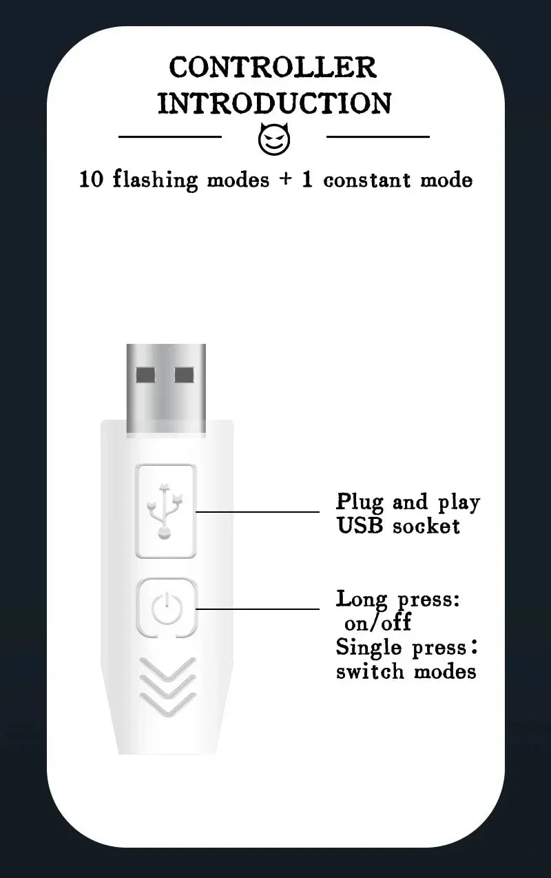 Add eye-catching style and enhanced safety to your vehicle with the Devil’s Eyes LED Light Signal Panel. This bold, strobe-style USB plug-in light attaches to your windshield or rear window and delivers 11 vivid lighting modes—from dynamic double flashes to subtle breathing lights—perfect for warning signals, aesthetic decoration, or standout car customization.