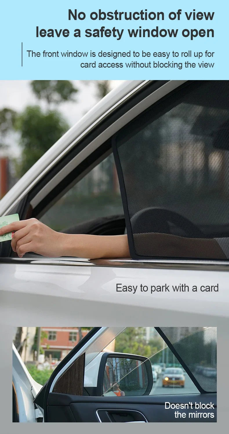 Crafted with high-quality polyester mesh, the sunshade offers excellent visibility while blocking out strong UV rays and excess heat. Its durable aluminum alloy frame ensures long-lasting use and firm magnetic grip without damaging your vehicle’s interior. Designed with modern aesthetics in mind, the curtain seamlessly blends with your car's design while offering maximum utility.