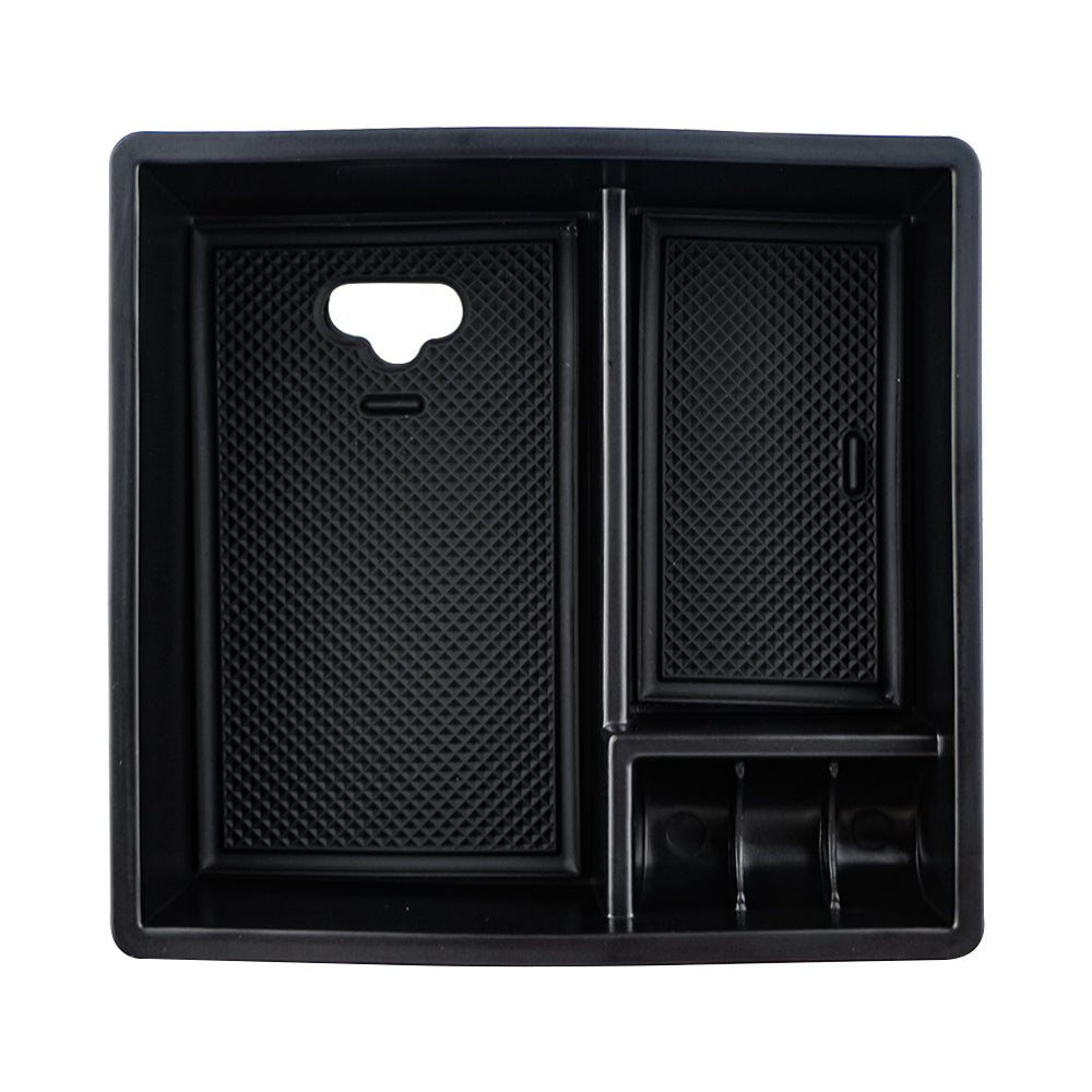 Crafted from durable plastic, this storage tray features a sturdy construction with built-in non-slip mats that keep your items secure. The sleek black design blends seamlessly with your car’s interior.
