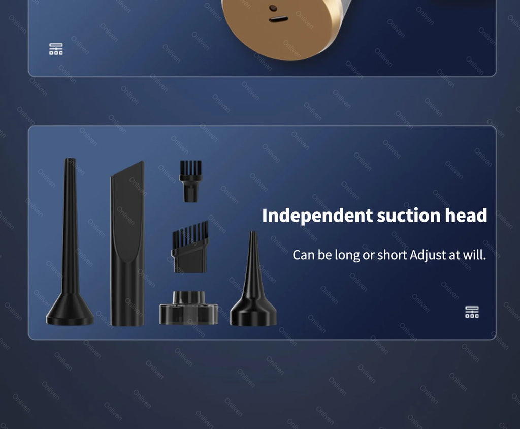 The SZUK Car Vacuum Cleaner is engineered for multi-purpose cleaning. Use it to vacuum dust, crumbs, pet hair, or dirt from car seats, floors, and dashboards. It can also blow dust or inflate small items like balloons thanks to its dual suction and blowing functionality. With its quiet operation and cordless design, it’s ideal for cars, offices, and small home cleaning tasks.