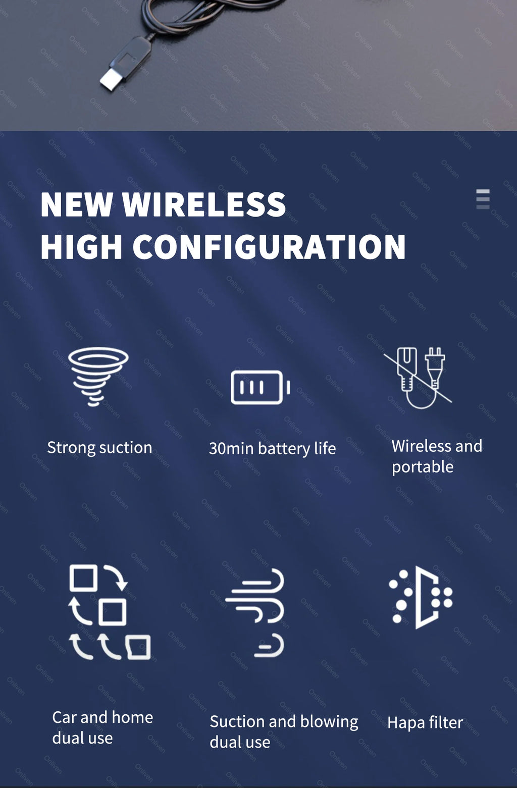 Powered by two built-in 2000mAh lithium batteries, this vacuum offers strong, long-lasting performance on a single charge. The Type-C USB charging interface allows for quick and convenient recharging using car chargers, laptops, or power banks, making it perfect for travel or emergency use.