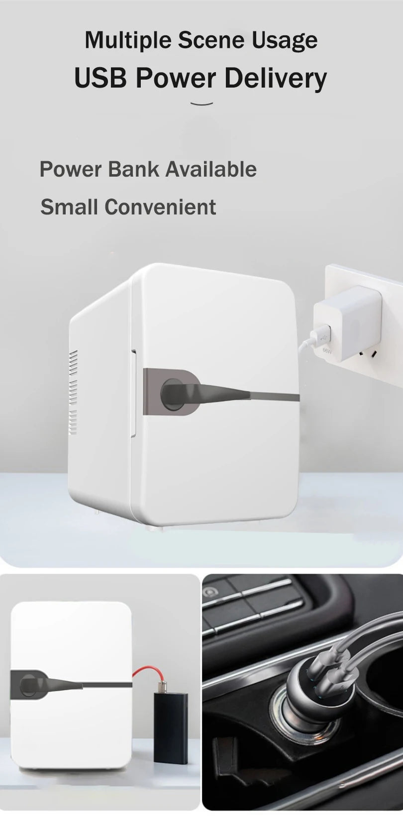 This unit operates via AC (home use), DC (vehicle use), or USB connection, ensuring convenience wherever power is available. It delivers quiet, energy-efficient performance for uninterrupted comfort day and night.