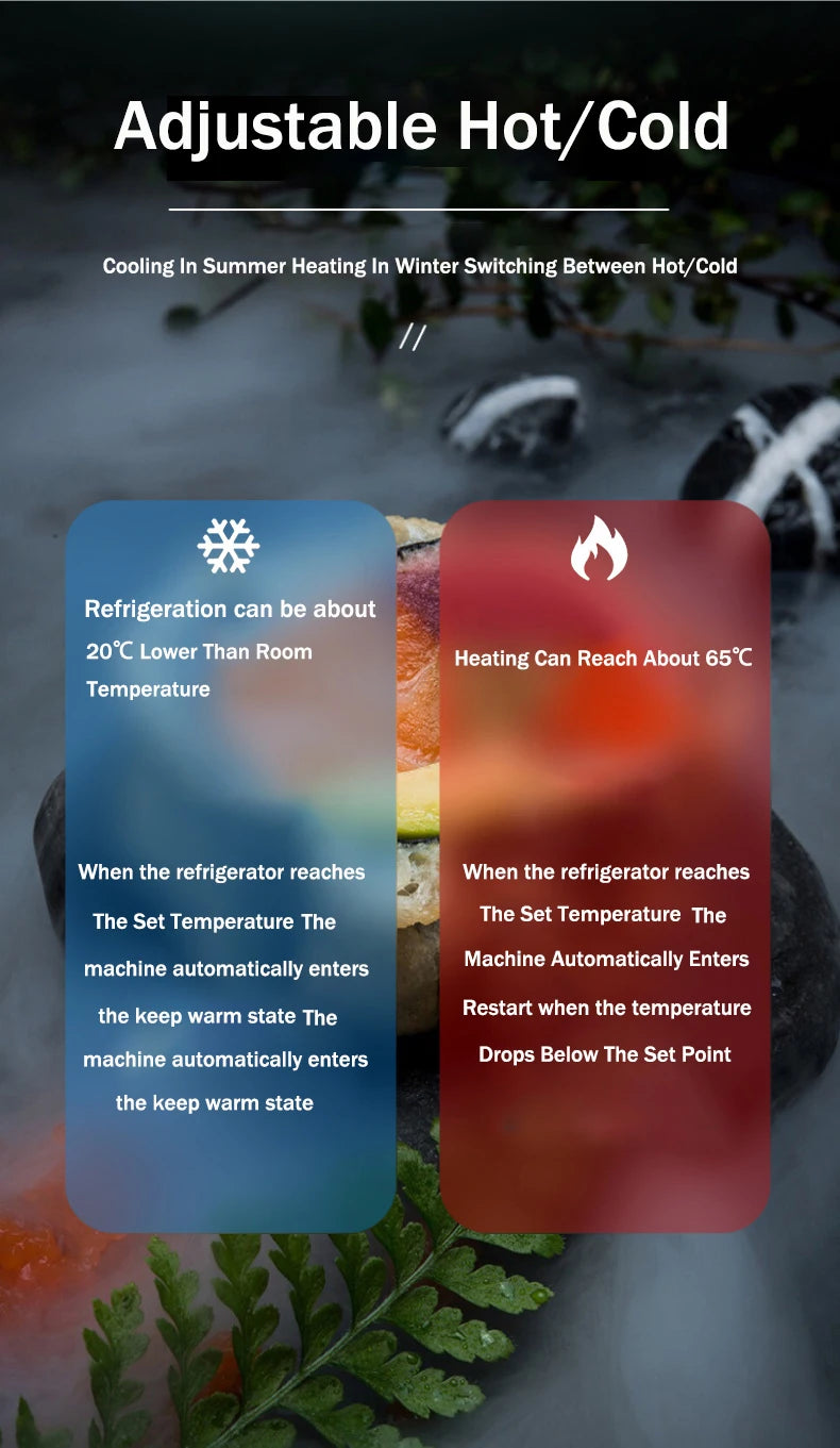The TAVALER mini refrigerator features dual cooling and heating modes, switchable depending on your needs. Use it to: